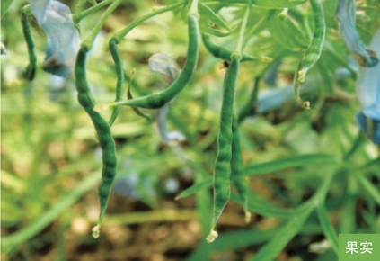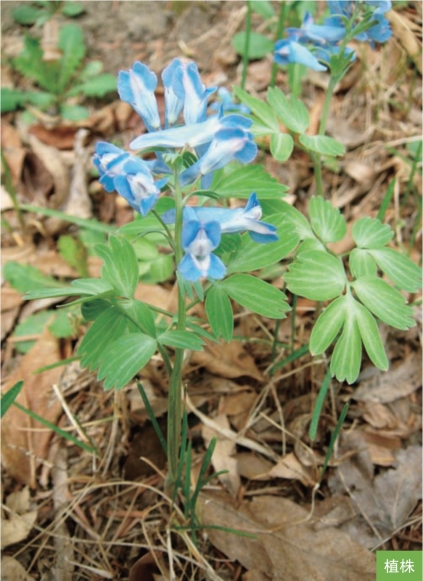 形态特征:多年生草本,高10~30厘米。块茎圆球形,质色黄。茎直立或斜伸,基部以上具1枚大而反卷的鳞片。叶二回或近三回三出复叶,末回小叶变异极大。总状花序花期密集,具20~40朵花;花蓝色、白色或紫蓝色;花冠唇形,4瓣,2轮,基部连合。蒴果线形或扁柱形,长0.7~2.6厘米,具1列种子,多少扭曲。种子黑色,扁肾形,平滑,直径约1.5毫米。花期4—5月,果期5—6月。