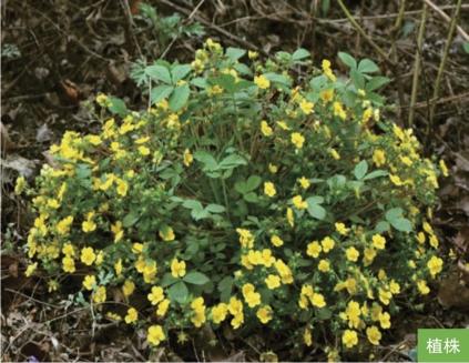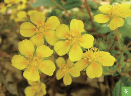 形态特征:多年生草本,高10~35厘米,全株被开展长柔毛。茎半卧生、斜升或直立。奇数羽状复叶;基生叶有小叶2~3对,小叶片倒卵状菱形、菱形或长圆形,长1.5~7厘米,宽1~3厘米;茎生叶互生,叶三出,小叶与基生叶小叶相似或长圆形且顶端有锯齿而下半部全缘。伞房状聚伞花序顶生;花瓣黄色,顶端圆钝或微凹。瘦果灰白色,近肾形,宽约1毫米,表面有脉纹。花期4—5月,果期6—8月。