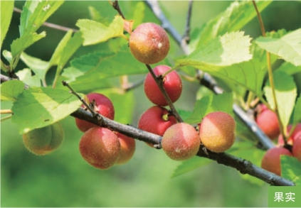形态特征:落叶灌木,高2~5米。小枝紫褐色。叶互生,短枝上的叶常簇生;叶片宽椭圆形至倒卵形,长2~6厘米,宽1.5~3厘米,顶端短渐尖,常3裂,基部宽楔形。花单生或2朵并生,先于叶开放;萼筒宽钟形,萼片5枚;花瓣5枚,顶端圆钝或微凹,粉红色。果实为核果,近球形,直径1~1.8厘米,红色;果肉薄,成熟时开裂;果核近球形,具厚骨质壳,表面具网纹。花期4—5月,果期6—7月。