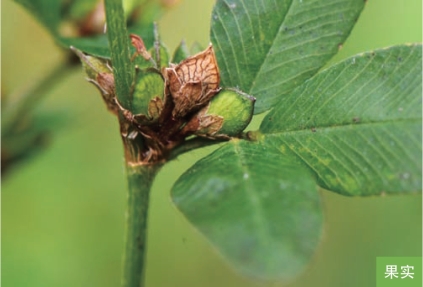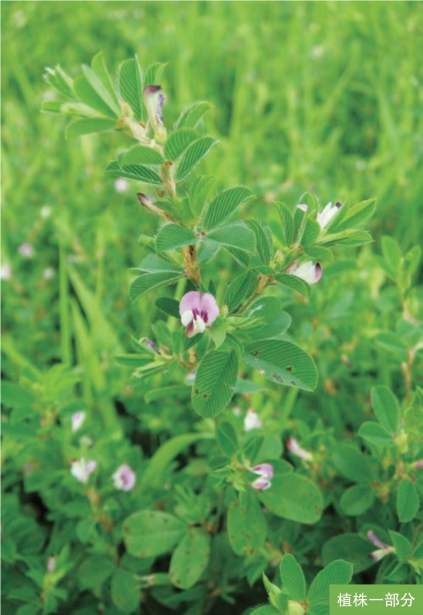 形态特征:一年生草本,高7~15厘米。茎平伏、上升或直立,茎和枝上被向上的白毛。叶互生;三出羽状复叶,小叶片倒卵形、宽倒卵形或倒卵状楔形,长5~18毫米,宽3~12毫米,顶端微凹或近截形,全缘。花常1~2朵腋生;花萼5裂;花冠淡红紫色。荚果椭圆形或卵形,稍侧偏,长约3毫米,具微凸的小刺尖。花期7—8月,果期8—10月。