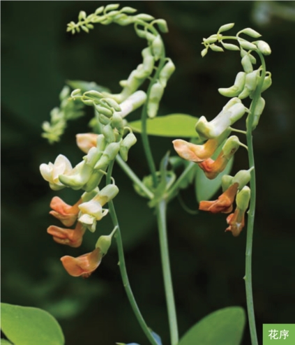 形态特征:多年生草本,高0.8~1.5米。茎近直立或上升。叶互生;偶数羽状复叶具小叶2~5对;小叶片卵形或椭圆形,全缘,长4~10厘米,宽2~7厘米,表面绿色,背面苍白色;茎上部叶叶轴末端具分歧的卷须,下部叶叶轴末端多为单一的卷须或为长刺状。总状花序腋生。萼钟状;花冠黄色。荚果线形,长8~15厘米,宽5~6毫米,具长网纹。种子紫褐色,宽长圆形,长3~5毫米。花期6—7月,果期8—9月。
