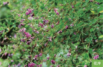 形态特征:落叶灌木,高1~3米。小枝黄色或暗褐色。叶互生;三出复叶,小叶片卵形、倒卵形或卵状长圆形,长1.5~6厘米,宽1~3.5厘米,顶端钝圆或微凹,具短刺尖,全缘。总状花序腋生,比叶长,常构成大型、较疏松的圆锥花序;花萼5浅裂;花冠红紫色。荚果歪倒卵形,稍扁,长约10毫米,宽约5毫米,表面具网纹,密被短柔毛。花期7—8月,果期8—9月。