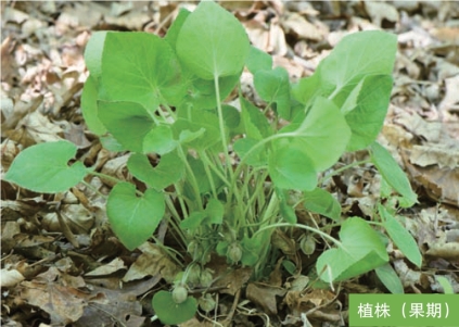 形态特征:多年生草本,花期高4~9厘米,果期高可达30厘米。根状茎粗而肥厚,具结节,黄褐色。叶基生,呈莲座状;叶片宽卵形或近圆形,长1~3.5厘米,宽1~3厘米,基部心形,两面密生白色短柔毛,果期叶片显著增大。花两性,淡紫色或近白色,具长梗。蒴果球形,密被白色柔毛,成熟时果梗通常向下方弯曲,致使果实接近地面。花期4—5月,果期7—8月。