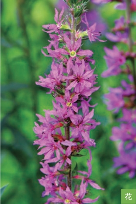 形态特征:多年生草本,高40~100厘米。茎直立,多分枝,全株青绿色,枝通常具4棱。叶对生或三叶轮生,有时上部互生;叶片披针形或宽披针形,长3~7厘米,宽1~1.5厘米,基部圆形或心形,有时略抱茎,全缘,无柄。总状花序生于分枝顶端;花两性,数花簇生于叶状苞腋内;萼筒状,顶端6齿裂;花瓣6枚,红紫色或淡紫色。蒴果扁圆形,被宿存萼包裹,长约3毫米。花果期6—9月。