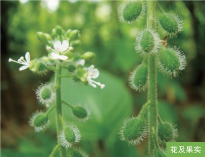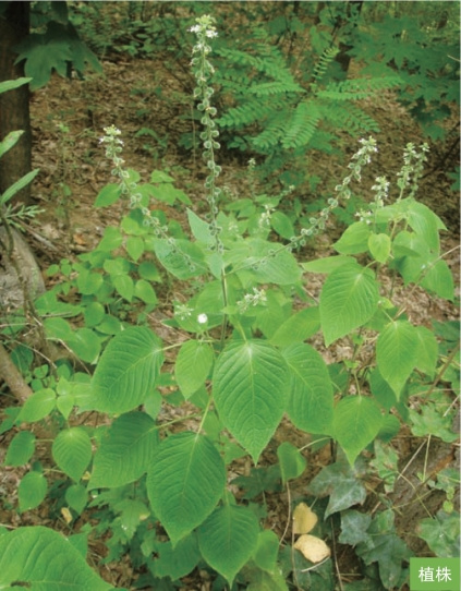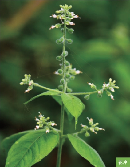 形态特征:多年生草本,高30~150厘米,全株被长柔毛、曲柔毛和腺毛。叶对生;叶片宽卵形或卵状心形,长4~8厘米,宽2~6厘米,基部常心形,顶端短渐尖。总状花序顶生或茎上部腋生;萼筒卵形,具2枚裂片,萼片花期反曲;花瓣2枚,白色,顶端倒心形,2裂。果实坚果状,黑褐色,斜倒卵形,长3~3.9毫米,直径1.8~3.3毫米。花期7—8月,果期8—9月。
