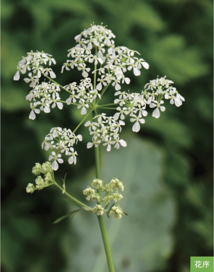 形态特征:多年生草本,高50~150厘米。茎直立,有沟纹,中空。茎生叶互生;基生叶及茎下部叶具长柄,叶片呈宽三角形,长7~15厘米,二至三回羽状分裂,背面及边缘散生白硬毛;茎上部叶渐小,叶柄呈鞘状,顶端及边缘有白柔毛。复伞形花序顶生或腋生,伞辐6~12;花白色,外侧者大,基部窄,顶端有内折的小尖头。双悬果线状长圆形,长6~9毫米,表面有疣毛或细刺毛。花果期6—9月。