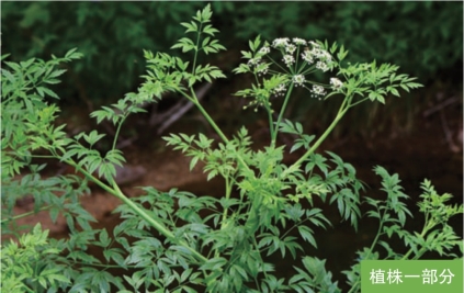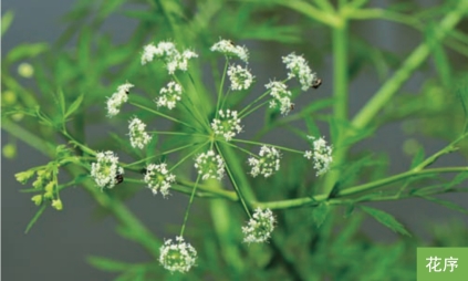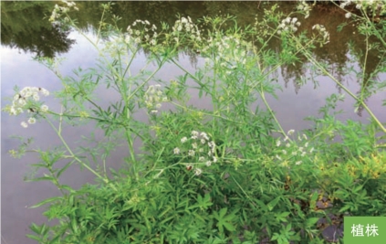 形态特征:多年草本,高50~100厘米。根状茎有节,内有横膈膜。茎直立,中空,上部分枝。茎生叶互生;基生叶及茎下部叶大,有长柄,基部鞘状,叶片二至三回羽状分裂,终裂片边缘疏生钝或锐锯齿;中上部叶较小,下部狭鞘状。复伞形花序顶生或腋生,伞辐6~25;小伞形花序有花15~40余朵,花瓣白色,顶端有内折的小舌片。双悬果近球形,长、宽各2~3毫米,果棱肥厚,钝圆。花期7—8月,果期8—9月。生境:生于沼泽地、水边、沟旁、湿草甸子、林下水湿地。