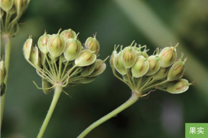 形态特征:多年生草本,高0.7~2米。茎直立,有棱槽,中空。茎生叶互生;叶片三出式分裂,裂片宽卵形至圆形、心形或不规则的3~5裂,具柄,裂片边缘具粗大的锯齿,锐尖至长尖;茎上部叶叶柄全呈稍膨大的鞘状,叶片简化。复伞形花序顶生和侧生,伞辐12~30;花瓣白色,二型,花序中央的花瓣等大,外轮花的花瓣不等大。双悬果倒卵状椭圆形或近圆形,扁平,长6~8毫米,宽5~7毫米。花期7—8月,果期8—9月。