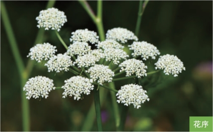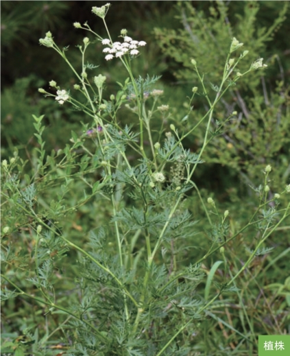 形态特征:多年生草本,植株高50~80厘米。茎直立,通常不分枝。基生叶有长柄,三回羽状全裂,终裂片线状披针形,全缘,顶端具白色刺尖;茎生叶较小,基部鞘状,茎上部叶叶柄全呈鞘状,抱茎。复伞形花序顶生或腋生,伞辐10~25;花瓣白色或淡红色,小舌片内折。双悬果椭圆形或宽椭圆形,长3.5~4毫米,宽2.5~3毫米;分生果背棱线形,稍凸起,侧棱翼状,翼宽0.5~1毫米。花期7—8月,果期8—9月。