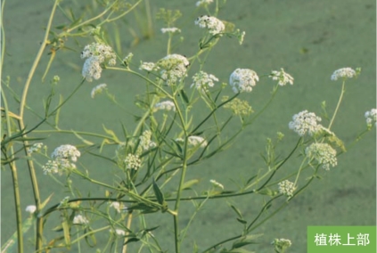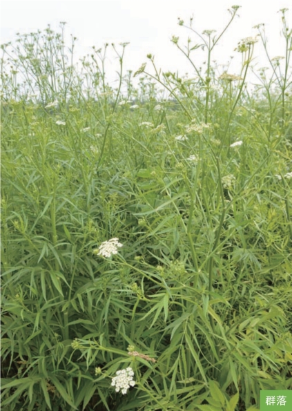 形态特征:多年生草本,高达2米。茎直立,中空。茎生叶互生;茎中、下部叶叶片轮廓呈长圆形至卵形,长6~25厘米,宽7~10厘米,一回羽状分裂,有羽片3~9对,羽片边缘有细锯齿;茎上部叶渐小。复伞形花序顶生和侧生,伞辐10~20;小伞形花序有花20余朵,花白色。双悬果宽椭圆形,两侧稍压扁,长2~3毫米,分生果的果棱肥厚,近翅状。花期7—9月,果期9—10月。