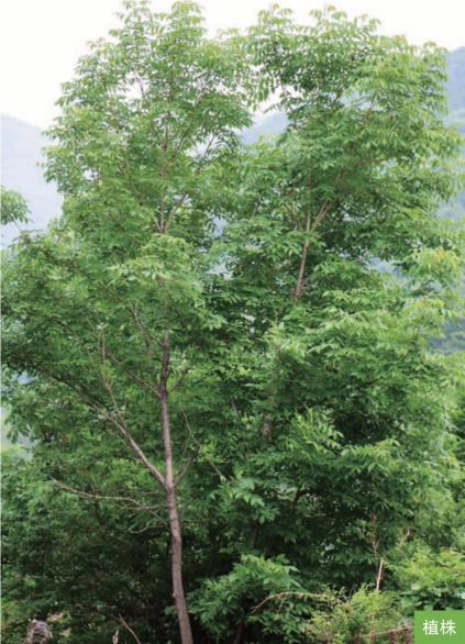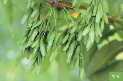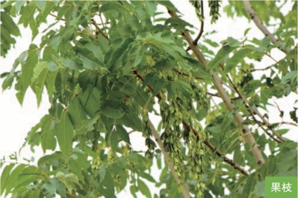 形态特征:落叶乔木,高达35米。树皮灰褐色,纵裂。小枝黄褐色至灰褐色,四棱形。叶对生;奇数羽状复叶,长20~50厘米;叶轴上面具平坦的阔沟,沟棱有时呈窄翅状,小叶着生处簇生锈色绒毛;小叶7~13枚,长圆形至卵状长圆形,长5~20厘米,宽2~5厘米,叶缘具细锯齿。圆锥花序生于上年生无叶的侧芽,先于叶开放,雄花与两性花异株;花萼钟状,4裂;无花冠。翅果长圆形至倒卵状披针形,扭曲,长3~4厘米,宽6~9毫米。花期5月,果熟期9—10月。