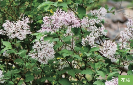 形态特征:落叶灌木,高1~2米。树皮暗灰褐色。单叶对生;叶片椭圆形、椭圆状卵形或卵状长圆形,长3.5~5.5厘米,宽2~4厘米,全缘。圆锥花序通常由侧芽生出;花萼4浅裂;花冠浅紫色,后渐近白色。蒴果披针形,长约1厘米,宽3~5毫米,粗约2.5毫米,顶端尖,有较多灰白色瘤状突起。花期4—5月,果期8—9月。