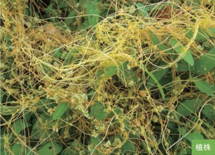 形态特征:一年生寄生草本。茎黄色,纤细,缠绕,直径约1毫米,无叶。花于茎侧簇生成聚伞花序或总状花序;苞片及小苞片鳞片状;花萼钟形,5裂至中部,裂片向外反折;花冠白色,钟形,5裂。蒴果球形,直径约3毫米,几乎全被宿存的花冠所包围,成熟时整齐的周裂。种子淡褐色,卵形,长约1毫米。花期6—8月,果期8—10月。