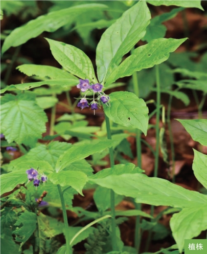 形态特征:多年生草本,高30~40厘米。根状茎鞭状,横走。茎直立,不分枝。茎下部叶鳞片状;茎中部叶匙形,长达10厘米;茎上部叶5~6枚近轮生,叶片倒卵状长圆形,长6~17厘米,宽2~8厘米。伞形花序顶生,通常有花3~6朵;花萼5深裂;花冠紫色,5裂。小坚果黑色,四面体形,长约3毫米。花果期6—8月。