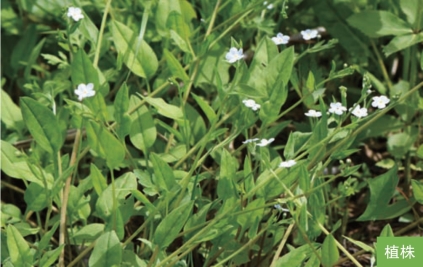 形态特征:多年生草本,高15~45厘米。茎数条丛生,花后伸长,着地生根并从叶腋发出匍匐枝。叶互生;叶片卵形,上部者狭卵形,长1.5~6厘米,宽1~3厘米。总状花序顶生,有叶状苞片,花单生腋外;花萼5裂;花冠淡蓝色或天蓝色,直径约8毫米,喉部附属物5枚。小坚果4枚,斜三棱锥状四面体形,有短毛。花果期5—8月。
