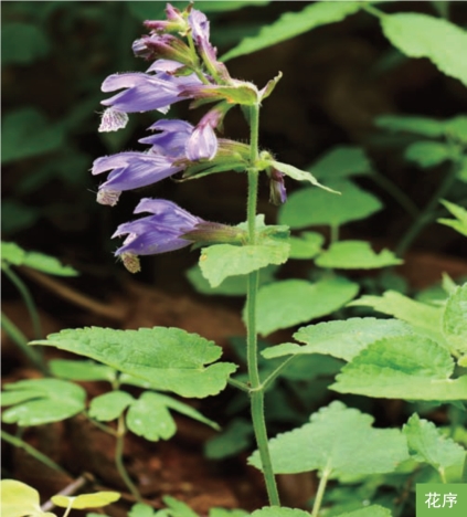 形态特征:多年生草本,高20~40厘米。茎直立,细弱,不分枝。叶对生;叶片心形或卵状心形,长2~9厘米,宽3~7厘米,边缘具疏或密的锯齿或圆锯齿。轮伞花序或假总状花序顶生;花萼钟形,萼齿5枚;花冠淡蓝紫色至蓝紫色,长3~5厘米。小坚果卵状长圆形,被短柔毛。花期4—6月,果期6—7月。