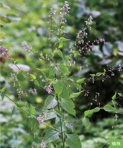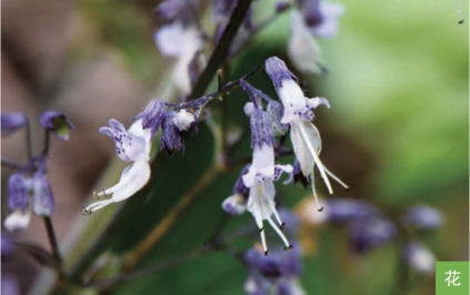 形态特征:多年生草本,高0.4~1.5米;根茎木质,粗大。茎直立,钝四棱形,下部木质。茎生叶对生;叶片卵形或宽卵形,长5~13厘米,宽3~7厘米,顶端具卵形的顶齿,边缘有粗大锯齿。圆锥花序在茎及枝上顶生,疏松而开展,由3~7朵花的聚伞花序组成;花萼钟形,蓝色或带蓝色,萼齿5枚;花冠蓝色或暗蓝紫色。小坚果黄褐色,卵状三棱形,长约1.5毫米。花期7—8月,果期8—10月。