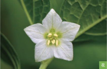 形态特征:一年或多年生草本,高40~80厘米。茎直立,茎节稍膨大。单叶互生;叶片长卵形至宽卵形,长5~15厘米,宽2~8厘米,近全缘而波状或者有粗牙齿。花单生于叶腋;花萼钟状,萼齿5枚;花冠白色,5浅裂,直径15~20毫米。果萼卵状,橙色或橙红色;浆果橙红色,球状,直径10~15毫米。种子淡黄色,肾形,长约2毫米。花期6—7月,果期8—10月。