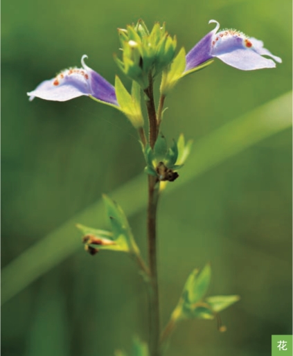 形态特征:多年生草本,高10~40厘米,粗壮,全体被多细胞白色长柔毛。茎直立,稀上升。基生叶匙形,有短柄;茎生叶对生,上部的常互生,无柄,椭圆形至倒卵状披针形,长2~7厘米,宽0.5~2厘米。总状花序顶生;花萼漏斗状,萼齿5枚;花冠蓝紫色,长15~20毫米。蒴果卵状球形,长2~2.5毫米,具短柔毛。种子细小,卵状球形。花期5—6月,果期7—8月。