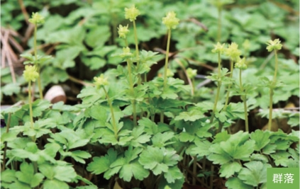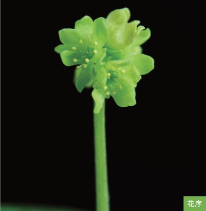 形态特征:多年生草本,高8~20厘米。根状茎横走。茎单一,纤细。基生叶1~3枚,为一至二回三出复叶,小叶片宽卵形或圆形,长1~2厘米,再3裂;茎生叶2枚,对生,三出复叶,小叶片卵圆形,通常3裂。顶生聚伞花序头状,有花5~7朵;花绿色或黄绿色,直径4~7毫米;顶生花的花萼裂片2枚,花冠裂片4枚,花柱4;侧生花的花萼裂片3枚,花冠裂片5枚,花柱5。核果球形,直径2~3毫米。花期4—6月,果期5—7月。