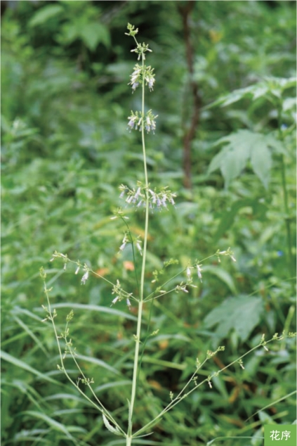 形态特征:多年生草本,高60~150厘米。根粗长,倒圆锥形。茎直立,不分枝。茎生叶3~6枚轮生;叶无柄或近无柄;叶片卵圆形至条状披针形,长2~10厘米,宽1~2.5厘米,边缘具锐锯齿,近基部全缘。狭圆锥状花序,花序分枝轮生;花萼5裂,裂片短针状或丝状锥形;花冠蓝色或蓝紫色,筒状细钟形,口部稍缢缩,长7~11毫米。蒴果宽倒卵状球形,长5~7毫米。种子黄棕色,长圆状圆锥形,稍扁,长约1毫米。花期7—8月,果期8—9月。