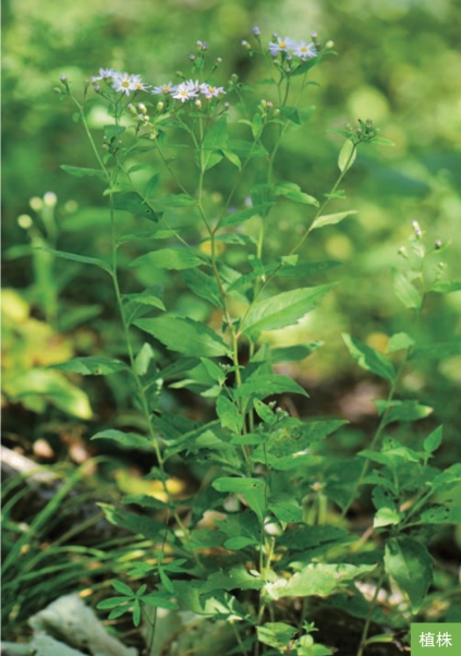 形态特征:多年生草本,高达1米。茎直立,上部稍分枝。茎生叶互生;叶片椭圆形或长圆状披针形,长5~15厘米,宽1~5厘米,基部楔形,成极短的翼状柄,边缘具缺刻状疏齿,具三出脉,侧脉3~4对。头状花序直径1.5~2厘米,排成伞房状;总苞钟形或筒状半球形,总苞片3层,覆瓦状排列。舌状花紫色或浅红色,管状花黄色。瘦果灰褐色,扁倒卵形,长约2毫米,被粗毛。花期8—9月,果期9—10月。