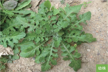 形态特征:二年生草本,高30~100厘米。茎直立,被稀疏蛛丝状毛,上部多分枝。基生叶莲座状,茎生叶互生;基生叶与茎中下部叶长椭圆形或倒披针形,长4~15厘米,宽1.5~5厘米,大头羽状深裂,背面密被白色蛛丝状毛;茎上部叶线状披针形或线形。头状花序多数,排成伞房花序;小花紫色或红色,花冠管状。瘦果深褐色,楔状或偏斜楔形,扁,长约2.2毫米。花期5—6月,果期6—7月。
