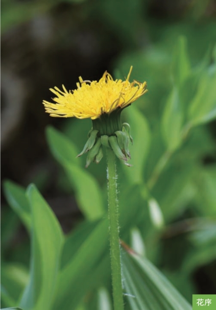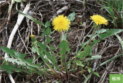 形态特征:多年生草本,高5~25厘米。叶基生,莲座状;叶片倒披针形,长5~20厘米,宽1.5~2厘米,羽状分裂或大头羽状分裂,基部下延至柄,呈狭翼状,带紫红色,全缘或疏具小尖齿。头状花序;外层总苞片花期反卷,披针形,背部顶端具乳头状纤毛,无角状突起;舌状花淡黄色,外层背面带黑紫色条纹。瘦果淡棕色,长圆状披针形,长约3毫米,上部具刺状突起,喙长约9毫米。花果期6—10月。