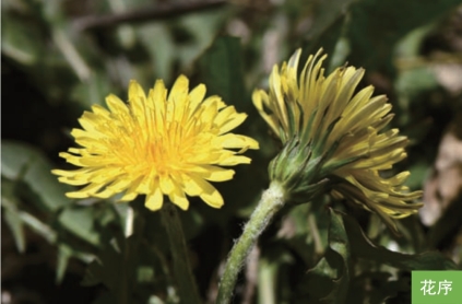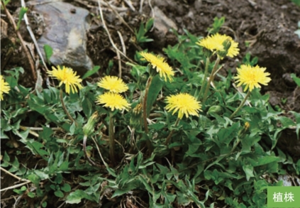 形态特征:多年生草本,高10~25厘米。基生叶莲座状;叶片倒披针形,长10~20厘米,不规则羽状浅裂至深裂,顶端裂片菱状三角形或三角形,全缘或边缘疏生齿。花葶多数,近顶端处密被白色蛛丝状毛;头状花序;总苞片3层,外层花期直立,无角状突起;舌状花黄色,边缘花舌片背面有紫色条纹。瘦果麦秆黄色,长椭圆形,长3~3.5毫米,上部有刺状突起,喙长8~11毫米。花果期4—6月。