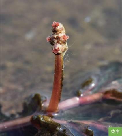 形态特征:多年生沉水草本。茎稍扁,多分枝。叶互生;叶片宽线形或线状披针形,无柄,长4~9厘米,宽5~10毫米,边缘波状而有细锯齿;托叶薄膜质,长5~10毫米,早落。穗状花序顶生;花小,花被片4枚,淡绿色。果实核果状,卵形,长约3毫米,背脊具齿牙,果喙长约2毫米。花果期5—7月。