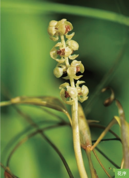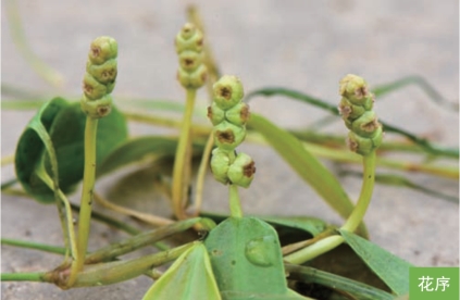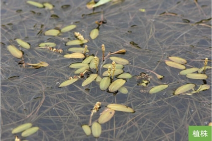 形态特征:多年生水生草本。茎纤细,长30~60厘米,多分枝。叶二型,互生,花序下的叶对生;花期前全部为沉水型叶,线形,长4~7厘米,宽约1毫米,顶端渐尖,全缘;近花期或开花时出现浮水叶,具柄,叶片椭圆形或长圆形,革质,长1.5~2.5厘米,宽5~7毫米,全缘;托叶膜质,长约1厘米。穗状花序顶生;花小,花被片4枚,绿色。果实倒卵形,长约2.5毫米,背部具脊。花果期5—8月。