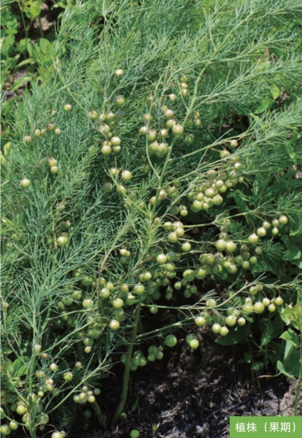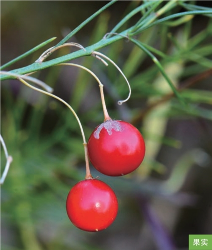 形态特征:多年生草本,高60~100厘米。茎近直立,中部至上部强烈回折状,分枝先下弯而后上升,强烈弧曲。叶状枝通常每4~8枚簇生,刚毛状,略有4~5棱,稍弧曲,长4~18毫米,粗0.2~0.4毫米,通常稍伏贴于小枝上。叶鳞片状,基部有刺状距。花每2朵腋生,单性,雌、雄异株,绿黄色而稍带紫色;花被片6枚。浆果熟时红色,球形,直径6~7毫米。花期5—6月,果期7—8月。