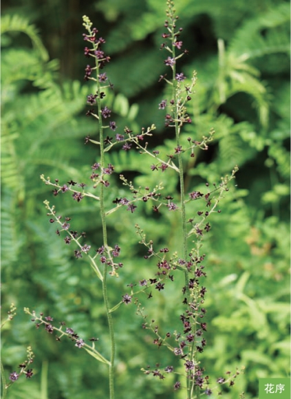 形态特征:多年生草本,高60~120厘米。茎直立,较纤细,基部被棕褐色、有网眼的残存叶鞘纤维。叶互生;基部叶长圆状披针形,上部叶线状披针形,长约30厘米,宽1~5厘米,基部渐狭,下延成鞘,抱茎。顶生圆锥花序长25~50厘米;总轴、枝轴及花梗密生绵毛;花多数,两性;花被片6枚,初时绿色,后变黑紫色,开展或反折。蒴果直立,卵形至长圆形,长1~1.7厘米,宽0.5~1厘米。花期6—7月,果期8—9月。