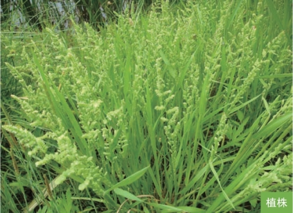 形态特征:一年生草本。秆疏丛生,直立。叶互生;叶鞘无毛,常长于节间;叶舌透明膜质;叶片宽线形,长5~20厘米,宽3~10毫米。圆锥花序狭,分枝稀疏;小穗常含1朵花,两侧扁圆形,灰绿色;颖舟形,边缘质薄,白色,背部灰绿色,具淡色的横纹;外稃披针形,具5条脉,顶端常具短尖头。颖果黄褐色,长圆形,长约1.5毫米,顶端具丛生短毛。花果期4~10月。