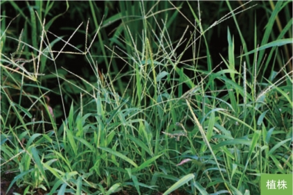形态特征:一年生草本。秆基部倾卧,节上生根,高10~60厘米。叶互生;叶鞘具长柔毛;叶片狭披针形,长4~8厘米,宽5~10毫米。总状花序4~7枚呈指状排列于秆顶,长5~12厘米;小穗披针形,灰绿色,长3~3.5毫米,孪生于穗轴各节;第一外稃边缘具刚毛状长柔毛,成熟后平展张开。颖果长约3毫米。花果期6—10月。