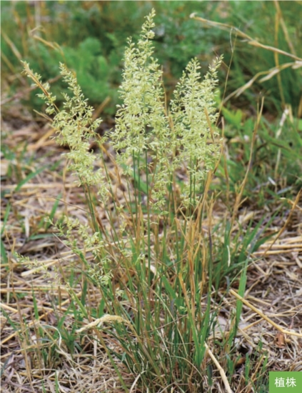 形态特征:多年生草本。秆密丛生,直立,具2~4节,高20~50厘米,在花序下0.5~3厘米处密生绒毛。叶鞘灰白色或淡黄色;叶舌膜质,截平或边缘呈细齿状;叶片线形,常内卷或扁平,基生叶10~25厘米,秆生者长1.5~7厘米,宽1~2毫米。圆锥花序穗状,下部间断,长5~10厘米,有光泽,主轴、花序分枝及小穗柄均被柔毛;小穗长4~6毫米,含2~4朵小花;颖不等长,边缘宽膜质,脊上粗糙;外稃具3脉,边缘膜质;内稃膜质,稍短于外稃,顶端2裂。花果期5—8月。