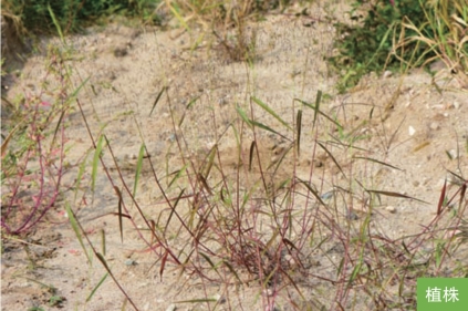 形态特征:一年生草本。秆直立或基部倾斜,纤细,高0.4~1.5米。叶互生;叶鞘松弛,边缘被纤毛;叶片线状披针形,长5~20厘米,宽3~10毫米。圆锥花序长15~30厘米,分枝纤细,斜举或平展;小穗灰绿色或带紫褐色,长2~2.5毫米,具细柄;第二外稃光亮,成熟时黑褐色。颖果椭圆形,长约1.5毫米,成熟时黑褐色。花果期8—10月。