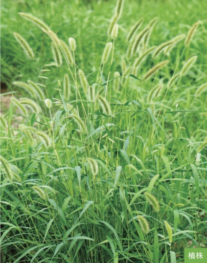 形态特征:一年生草本。秆直立,丛生,高30~120厘米。叶鞘两侧压扁,基部彼此跨生;叶片线形,长10~80厘米,宽3~8毫米,基部生疣毛。圆锥花序长5~25厘米,主轴密生柔毛,刚毛淡绿色或紫色;小穗通常单生,长5~8毫米;第一颖微小或缺,第二颖长为小穗的1/3~2/3;第一小花中性,外稃与小穗等长;第二小花两性。颖果长圆形,长约3.5毫米。花果期6—10月。