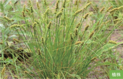 形态特征:多年生草本。秆丛生,高30~60厘米,扁三棱形。叶片线形,等长或长于秆,宽2~4毫米。下部苞片叶状,显著长于花序,上部的刚毛状。穗状花序紧密;小穗多数,雄雌顺序;雄花鳞片锈黄色;雌花鳞片卵形至长椭圆形,顶端渐尖,长约2毫米,锈黄色,比果囊狭;果囊长于鳞片,卵形或宽卵形,长3~4毫米,稍扁,中部以上边缘具宽翅,顶端急缩成喙,喙口2齿裂;柱头2个。小坚果疏松地包于果囊中,椭圆形,平凸状,长约1毫米,淡棕色。花果期5—7月。