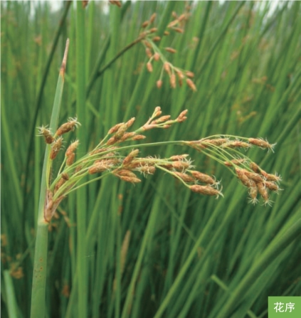 形态特征:多年生草本。根状茎匍匐,粗壮。秆高大,直立,圆柱状,高1~2米。秆基部具3~4个叶鞘,管状,膜质,最上面一个叶鞘具叶片。叶片狭线形,长1.5~11厘米。苞片1枚,为秆的延长,直立向上,常短于花序。长侧枝聚伞花序简单或复出,假侧生,具3~13个或更多个辐射枝;小穗单生或2~3个簇生于辐射枝顶端,卵形或长圆形,长5~10毫米;鳞片膜质,棕色或紫褐色,长约3毫米;柱头2个。小坚果灰褐色,倒卵形或椭圆形,双凸状,长约2毫米。花果期6—9月。