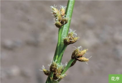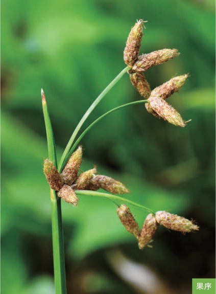 形态特征:多年生草本。具匍匐根状茎。秆锐三棱形,直立。叶片长1.5~6厘米,宽1.5~2毫米。苞片1枚,为秆的延长;长侧枝聚伞花序简单,假侧生,有1~8个辐射枝;小穗卵形或长圆形,长6~12毫米;鳞片长3~4毫米,黄棕色,背面具1条中肋,稍延伸出顶端呈短尖;下位刚毛3~5条,全长都生有倒刺;柱头2个。小坚果成熟时褐色,倒卵形,平凸状,长2~3毫米,具光泽。花果期6—9月。