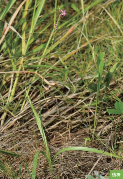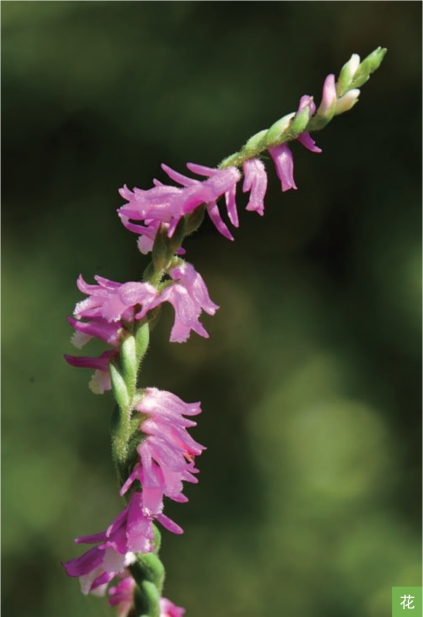 形态特征:多年生草本,高15~40厘米。基生叶2~5枚,叶片宽线形或宽线状披针形,长3~10厘米,宽5~10毫米。总状花序呈螺旋状扭转;花苞片卵状披针形;花紫红色、粉红色或白色,在花序轴上呈螺旋状排生;萼片的下部靠合,中萼片与花瓣靠合呈兜状;侧萼片偏斜,长5毫米;花瓣斜菱状长圆形;唇瓣宽长圆形,凹陷。蒴果斜椭圆形,长4~6毫米。花果期7—8月。