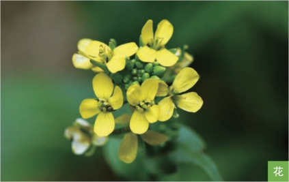 形态特征:一年或二年生草本,高35~70厘米,全株稍被白粉。茎直立,多分枝。基生叶及茎下部叶有长柄,叶片倒卵形或宽倒卵形,长20~30厘米,深绿色,全缘或微有齿;茎中上部叶叶柄渐短,叶片渐狭且小,基部抱茎。总状花序顶生和腋生,呈圆锥状;花黄色,直径1.3~1.5厘米;花冠4枚,十字形。长角果线形,长2~6厘米,宽3~4毫米,喙细,长8~12毫米。种子紫褐色,球形,直径1~1.5毫米,有蜂窝纹。花期5月,果期6月。