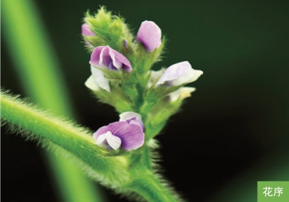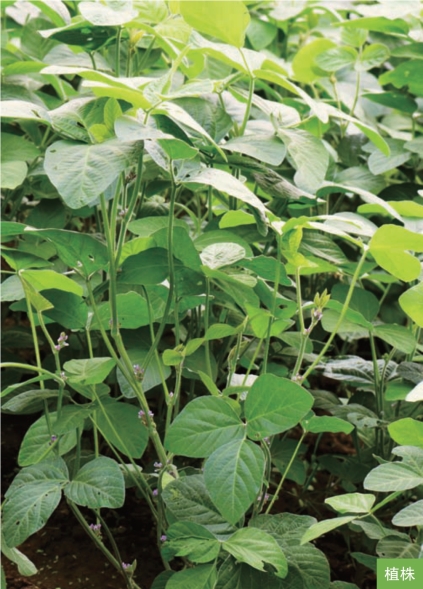形态特征:一年生草本,高30~90厘米。茎粗壮,直立,密被褐色长硬毛。叶互生;羽状复叶具3小叶;小叶卵形或菱状卵形,长5~12厘米,宽4~7厘米,两面被毛。短总状花序;花小,淡红色、紫色、淡紫色、白色。荚果密被褐黄色长毛,长圆形,稍弯,长3~6厘米。种子黄色、淡绿色、褐色和黑色等多种,椭圆形、近球形、卵圆形至长圆形。花期6—7月,果期7—9月。