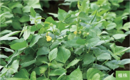 形态特征:一年生草本,高30~70厘米,全株被倒生的短硬毛。叶互生;羽状复叶具3小叶;小叶卵形、菱状卵形,长5~10厘米,宽5~8厘米,全缘或浅3裂。短总状花序腋生;花黄色。荚果圆柱状,长5~11厘米,宽5~6毫米。种子有多种颜色,通常为暗红色,长圆形,长5~6毫米,宽4~5毫米。花期7—8月,果期8—10月。