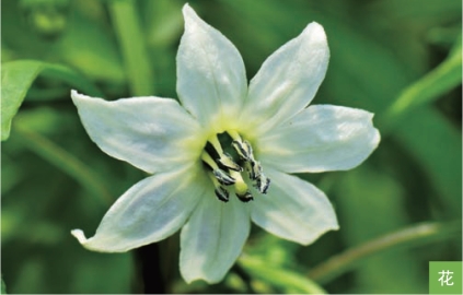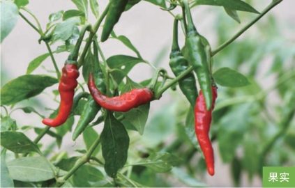 形态特征:一年生草本,高30~80厘米。茎分枝稍呈“之”字形折曲。叶互生,枝顶端叶成双生或簇生状;叶片长圆状卵形、卵形或卵状披针形,长3~12厘米,宽1.5~4厘米,全缘。花单生于叶腋或枝腋,俯垂;花萼杯状;花冠白色。果实长指状,顶端渐尖且常弯曲,未成熟时绿色,成熟后为红色、橙色或紫红色,味辣。种子淡黄色,扁肾形,长3~5毫米。花果期6—10月。