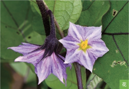 形态特征:一年生草本,高达1米,全株被星状柔毛。茎直立,多分枝。单叶互生;叶片卵形至长圆状卵形,长5~18厘米或更长,宽5~15厘米,边缘浅波状或深波状圆裂。能孕花单生,花后常下垂,不孕花蝎尾状与能孕花并出;花萼近钟形,直径约2.5厘米;花冠辐状,紫色或淡紫色。浆果长圆形、圆柱形或近球形,通常紫色、绿色或白色。花果期6—10月。