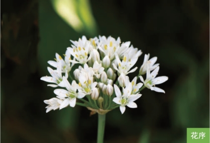 形态特征:多年生草本,高25~60厘米。根状茎倾斜,横卧,鳞茎簇生,鳞茎外皮破裂成网状或近网状。叶基生;叶片条形,扁平,长15~30厘米,宽3~8毫米。花葶圆柱状,高25~60厘米;伞形花序半球状或近球状;花白色;花被片6枚,2轮排列。蒴果倒心状三棱形,黑色。花期7—8月,果期8—9月。