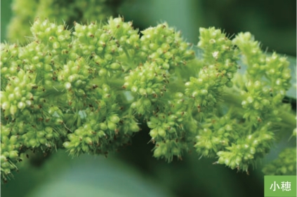 形态特征:一年生栽培作物,高通常0.6米左右。秆粗壮,直立。叶互生;叶片线状披针形,长10~45厘米,宽5~30毫米。穗状圆锥花序呈圆柱状或近纺锤状,通常下垂,长10~40厘米,宽1~5厘米;小穗椭圆形,长2~3毫米,黄色、橘红色或紫色。花期7—8月,果熟期9月。