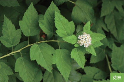 形态特征:落叶灌木,高达3米。小枝幼时紫红色,老时灰褐色,树皮成纵向剥裂。单叶互生;叶片三角状卵形至宽卵形,长3.5~5.5厘米,宽3~5厘米,基部心形或近心形,稀截形,通常3~5浅裂,边缘有重锯齿,背面被稀疏星状毛和短柔毛,沿脉较密。伞形总状花序;总花梗和花梗密被星状柔毛;萼筒杯状,萼裂片5枚;花瓣5枚,白色。蓇葖果膨大,卵形,具长尖头,外面被星状柔毛。种子黄色,光亮。花期5—6月,果期7—8月。